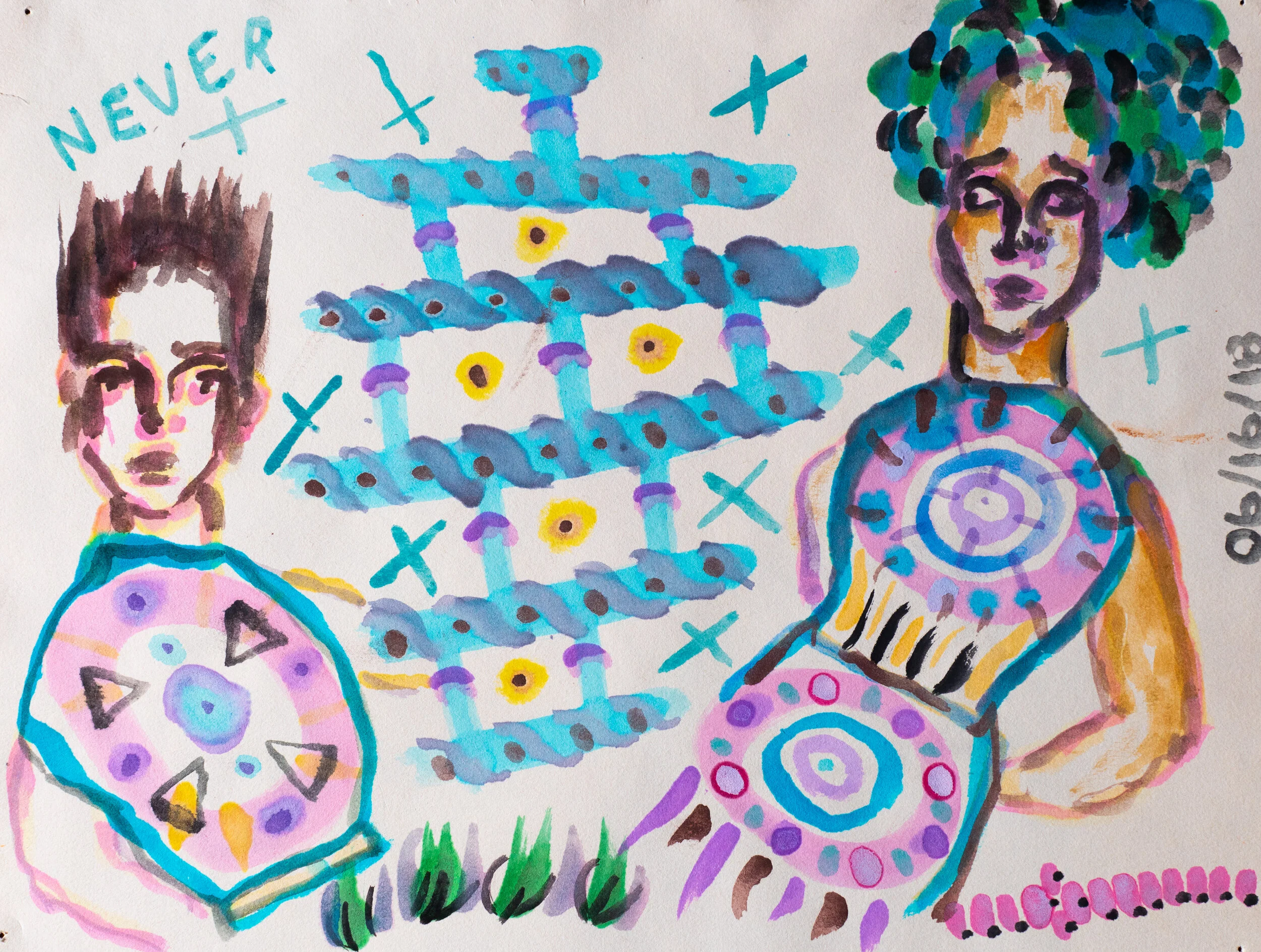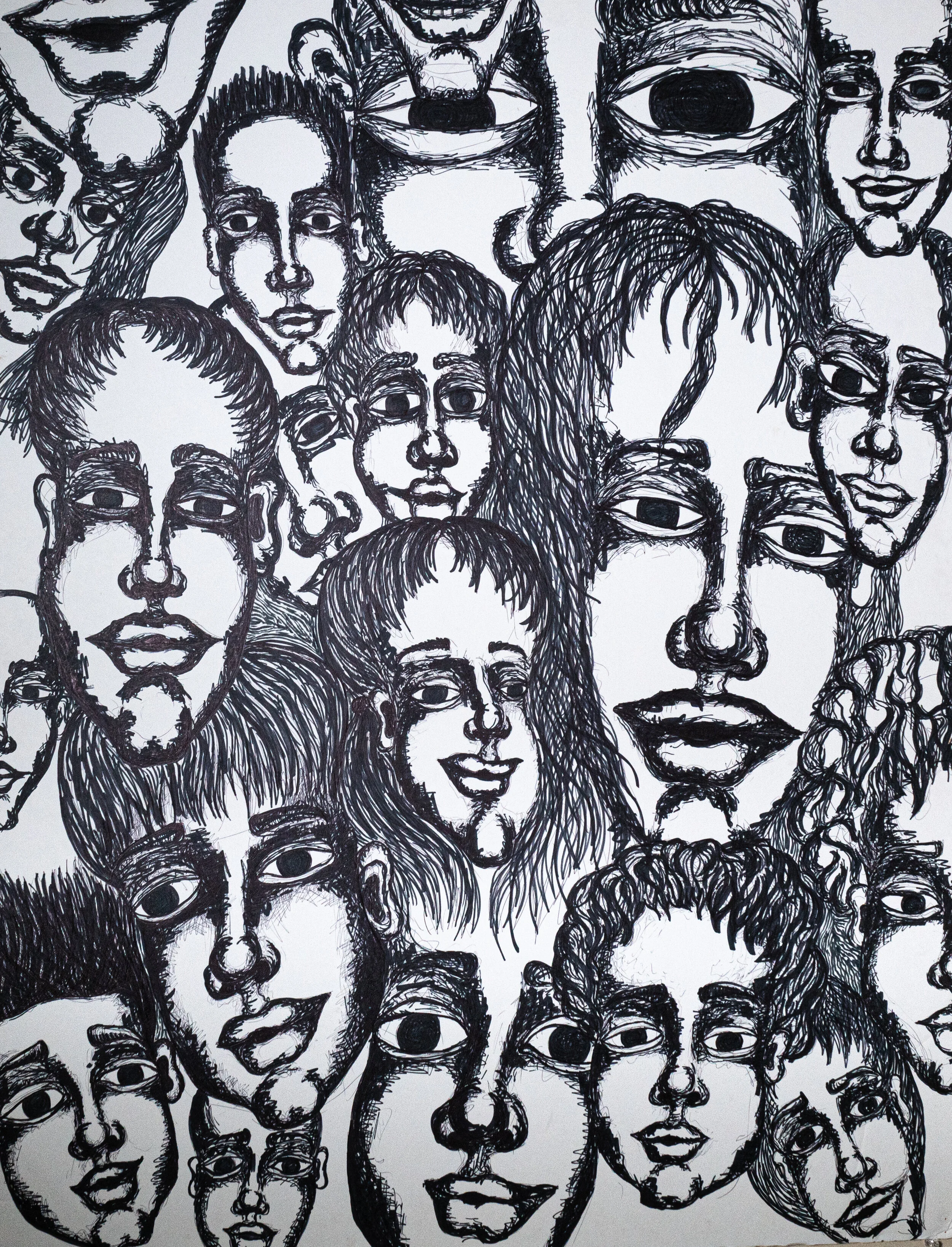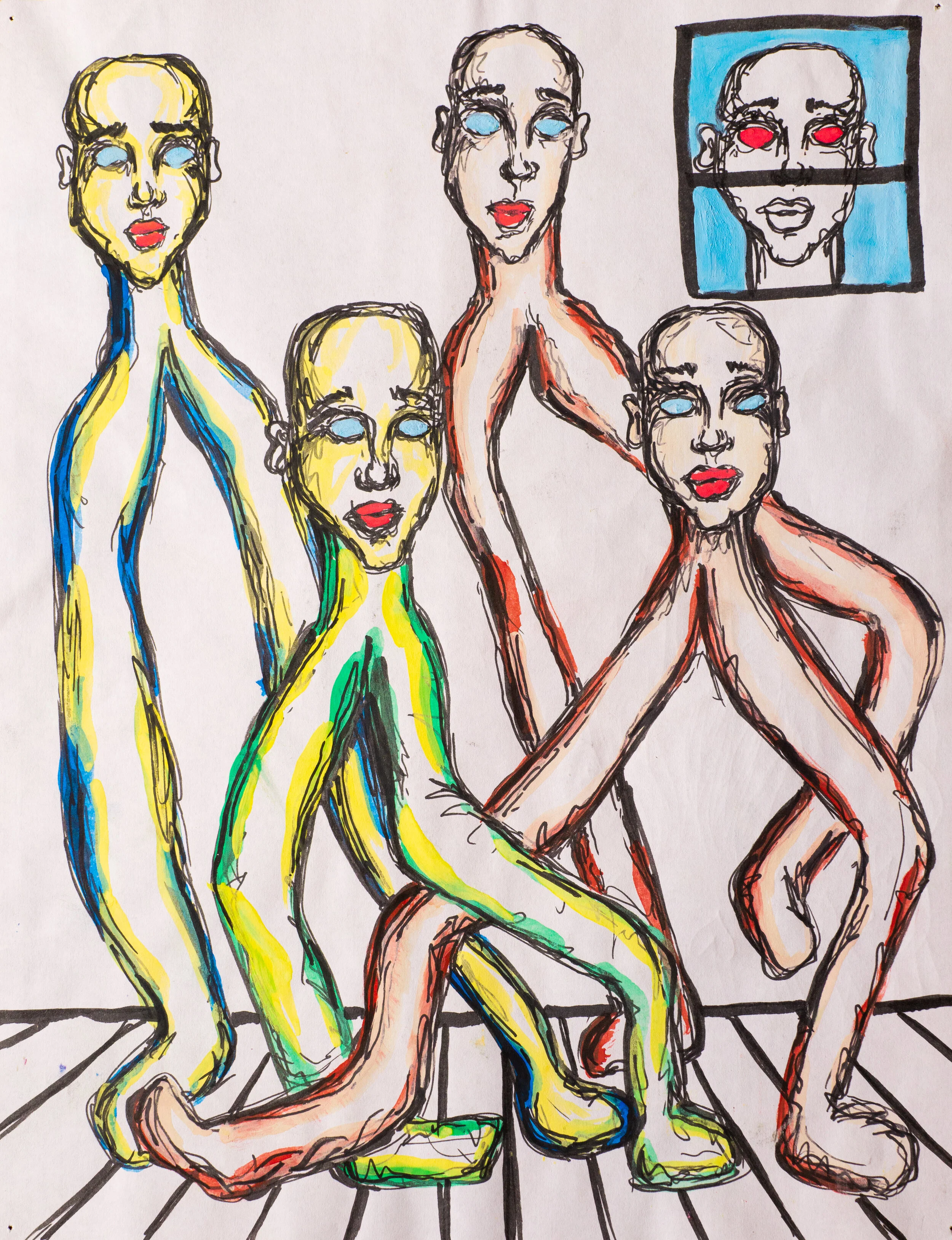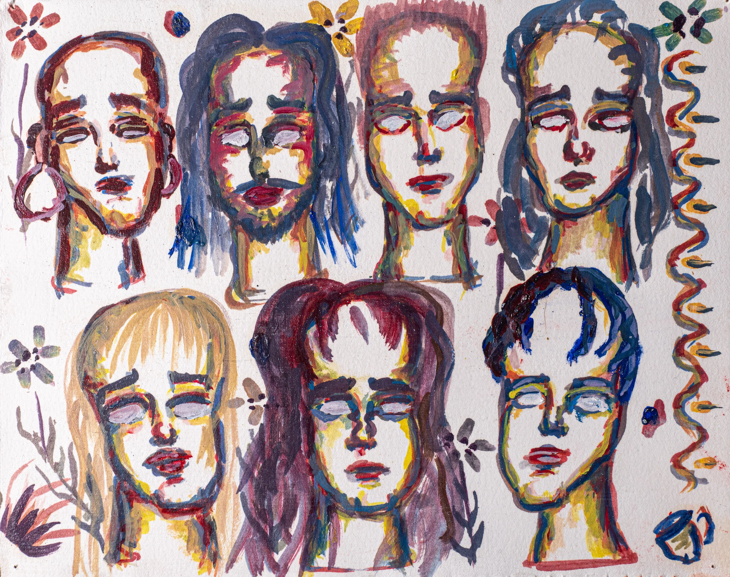 "Quadricolored Heads" - Acrylic and Sharpie on Foamcore - April 2020
