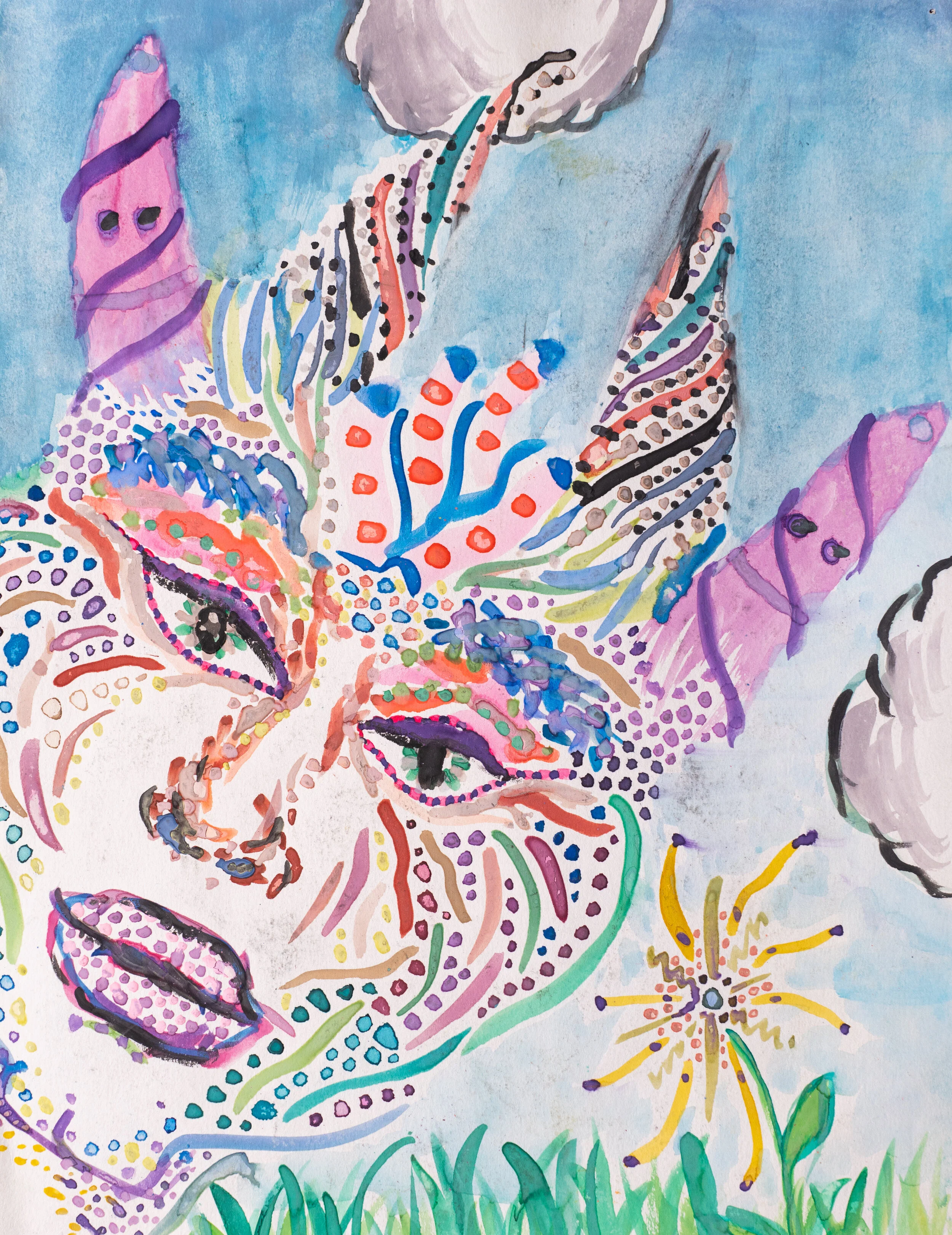 "Colorful Horned Head" - Watercolor on Paper - August 2017