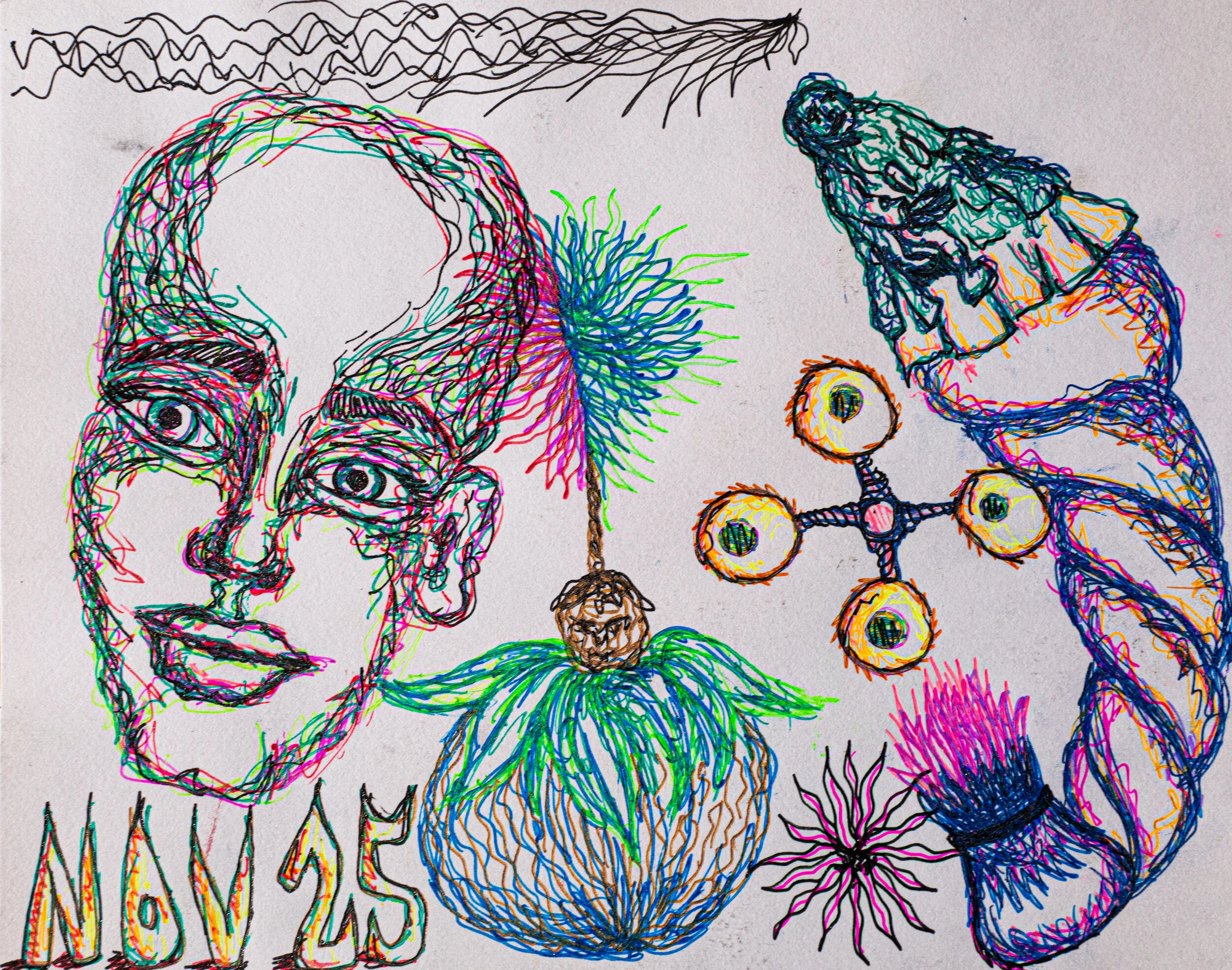 "Dragonfly Face" - Pen and Watercolor on Paper - December 2016