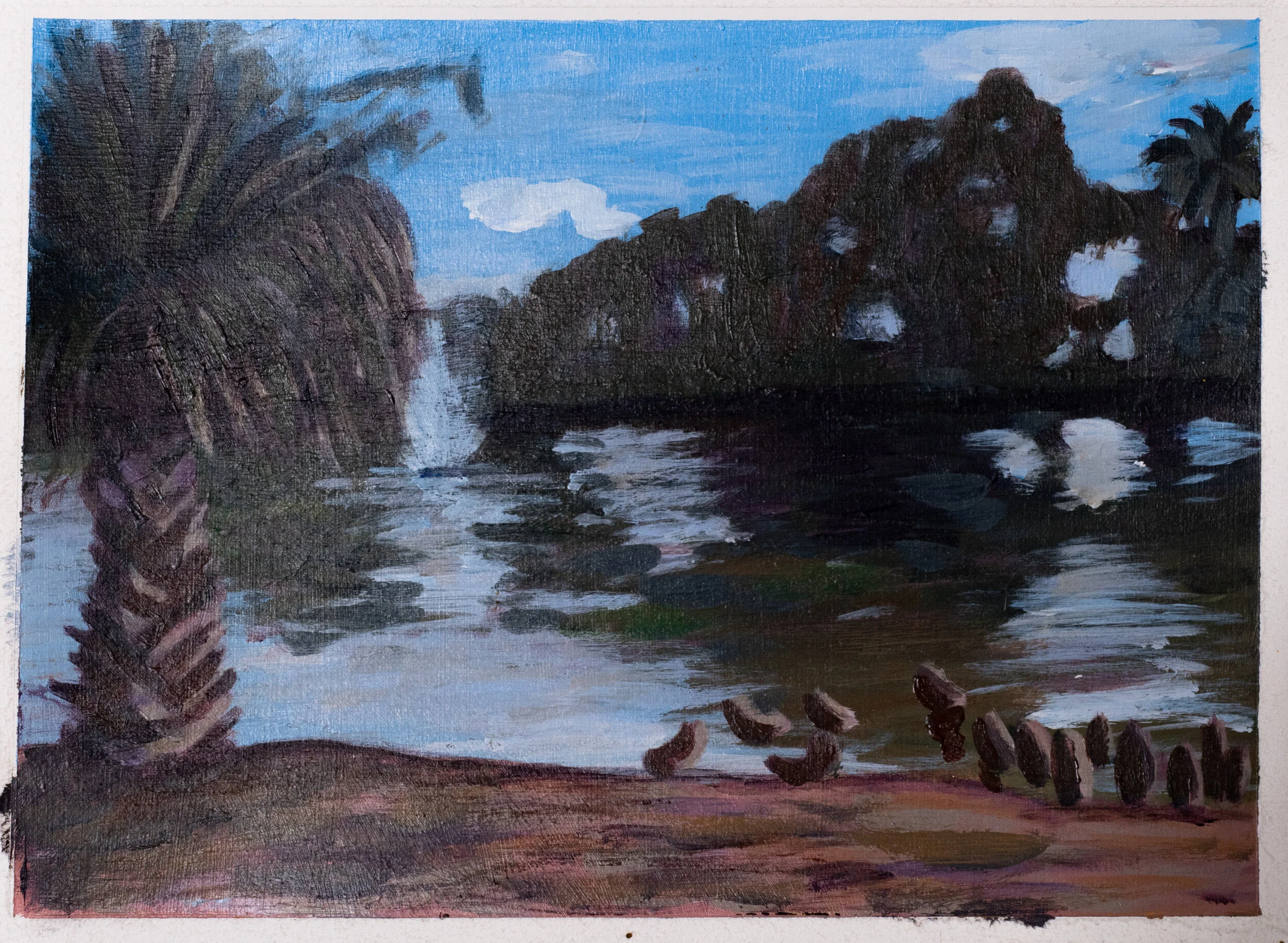 "Audubon Fountain in Plein Air #1" - Acrylic on Paper - September 2017