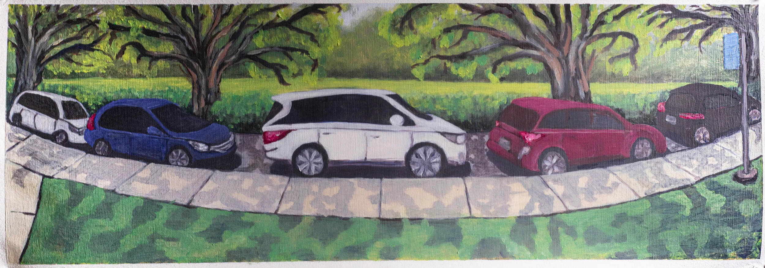 "Cars Parked at Newcomb Place" - Oil on Paper - May 2018